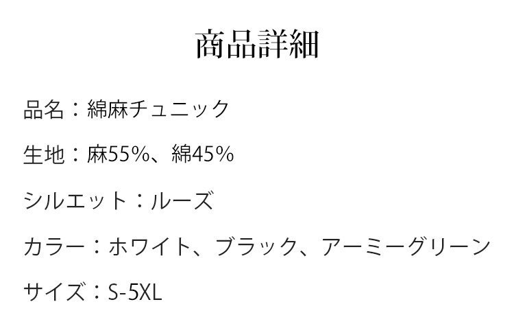 【綿麻チュニック】極上の着心地 吸湿性に優れ、いつでもサラサラ!